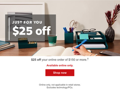 43 $25 off $75 staples coupon